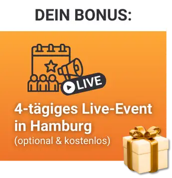 Als exklusiven Bonus laden wir dich kostenlos zu unserer NLP Live Experience in Hamburg ein.