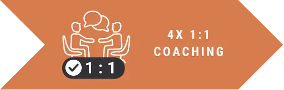 Im Zuge deiner Ausbildung erwartet dich bei uns eine individuelle Betreuung: Neben einem Onboarding-Call und einem auf deine Bedürfnisse zugeschnittenen Entwicklungsplan darfst du dich auch über 4 exklusive 1:1 Coachings mit einem unserer erfahrenen Coaches freuen.